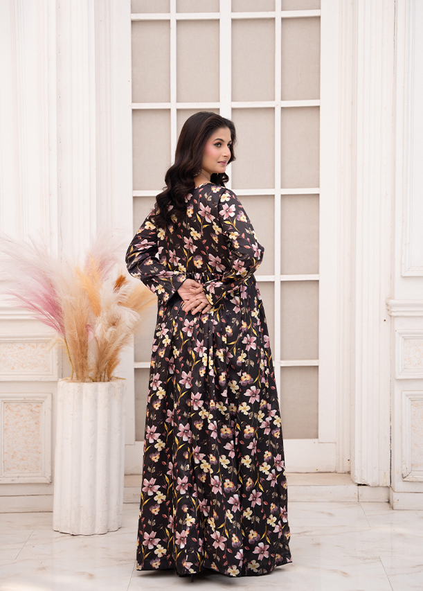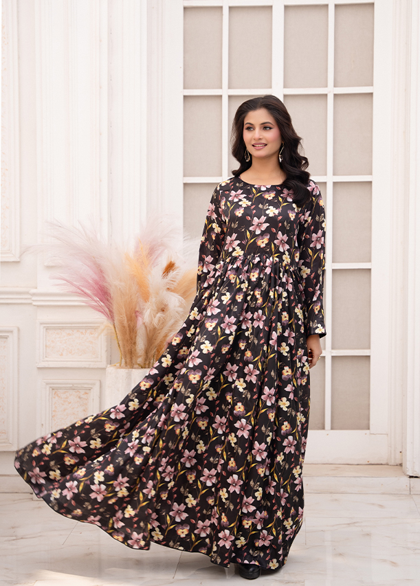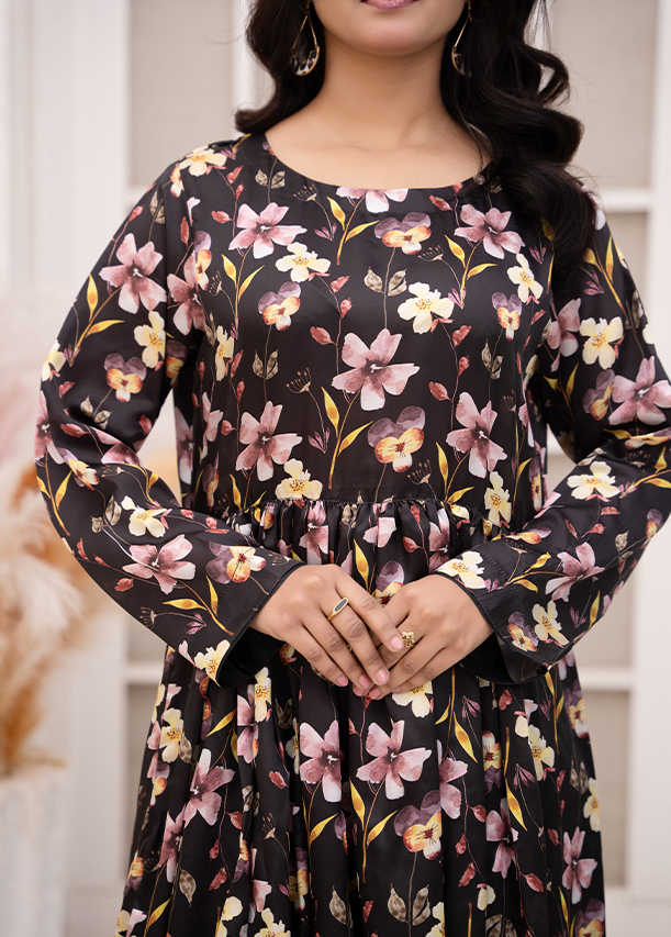 • Ready to wear stitched printed long shirt with a flared cut and comfortable fit.